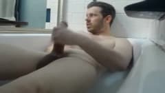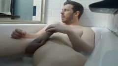 Esse homem moreno entra na banheira completamente nu e puxa o ganso porque quer fazer um canudo que o excite ao máximo. Grava tudo