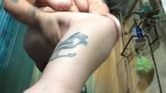 Fique de olho nessa mulher muito redonda enquanto toma banho bem e mostra suas formas naturais abundantemente. Tem um corpo rechonchudo e tatuado.