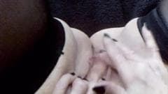 Ela abre as pernas para que possamos ver sua vagina e acaricia-lo com prazer, mas fica mais excitada quando um amigo a ajuda a fazê-lo