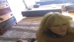 Essa loira, completamente sozinha, consegue se divertir e é assim que ela faz em seu tapete. Não perca detalhes dessa putica tocando.