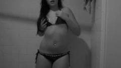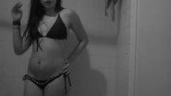 Esta putinha quer nos excitar mostrando seu corpo em um maiô. Nesta cena, é certo que nos causará alguma ereção saborosa