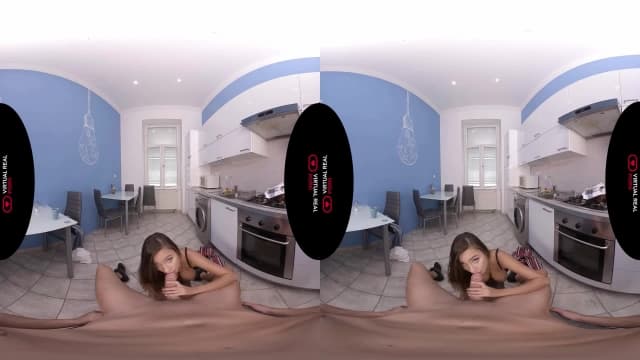Aqui vemos uma estrela pornô super gostosa curtindo a piça do seu namorado nessa cena VR gostosa de foda na cozinha