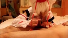 Boquete e punhetinha com um passivo vestido de cosplay
