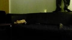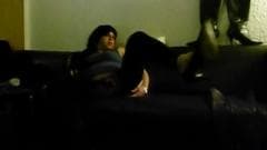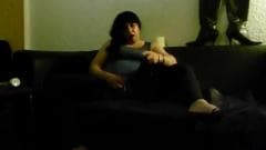 Esse transexual maduro está cheio de tesão e vai se divertir enfiando um grande consolo no cuzinho enquanto bate uma punheta! Que delícia, heim!