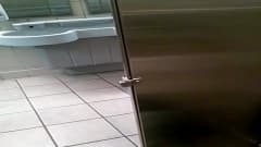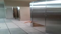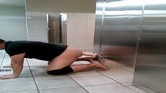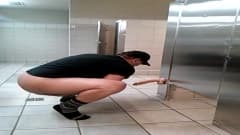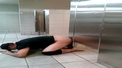 Aqui vemos um homem gordinho que entra em um banheiro público e começa a se masturbar com um vibrador que pode ser preso a qualquer parede.