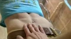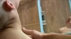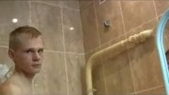 Este homem descobre seu sobrinho se masturbando nu no banheiro e decide ajudá-lo a deixar seu pau duro se masturbando enquanto grava