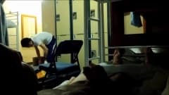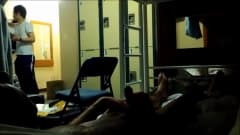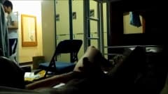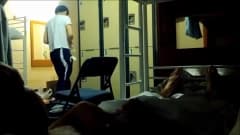 Esse cara fica excitado ao se masturbar enquanto seus colegas de quarto num hostel o observam. Não o perca.