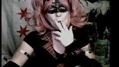 Não perca este vídeo de um cara mascarado vestido como uma colegial que gosta de se masturbar para nós.