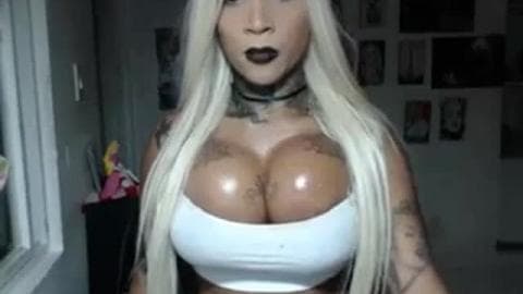 Ela é uma transexual de cabelos dourados que começa a se masturbar na câmera enquanto mostra seus atributos, e quer que a gente veja suas tatuagens.