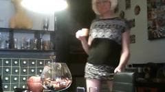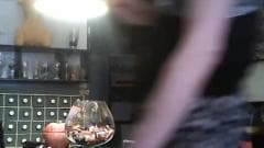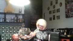 Esse cara maduro se disfarça de mulher com tudo e peruca, para se masturbar mais rico enquanto está em casa.