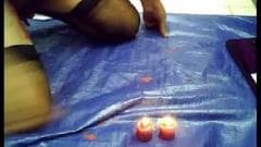 Acontece a esse homem gay pintar seu corpo com tinta vermelha e colocar molas de roupa nas bolas para ficar excitado quando faz esse vídeo pornô