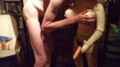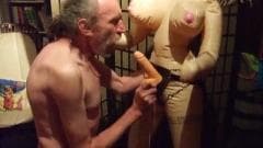 Este velho está ansioso para ter uma sessão de sexo gay com uma boneca inflável que foi comprada e tem um bom pau para chupar e gozar.