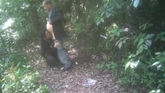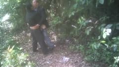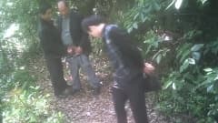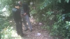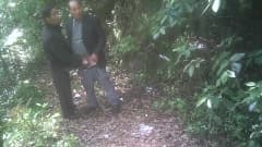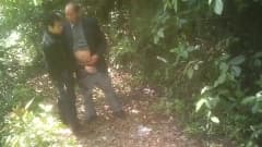 Os velhotes safados asiáticos gostam de um boquete na floresta