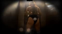 Esta é uma trans japonesa que hoje começa a se masturbar em um banheiro público e o faz no WC para poder ter espaço para abrir bem as pernas.