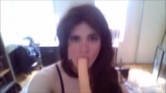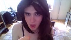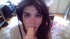 Este jovem travesti de seios pequenos adora chupar seu grande pênis e faz isso profundamente em sua garganta. E grava enquanto o faz.