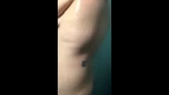 Este transsexual tirou seu pênis para acariciar sua nova buceta com prazer enquanto tomava banho. É filmado com sua webcam para todos!