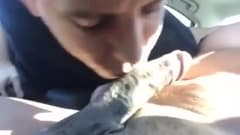 Este jovem não se importa se eles o vêem. Ela não hesita em chupar o pau de seu homem, mesmo que eles estejam no carro em uma via pública.