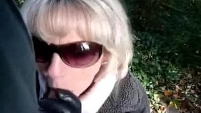 Essa loira foi passear com seu parceiro no sábado, mas está frio para tirar todas as roupas, para que ela mal chupe seu pau