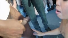Esses caras vão fazer um favor a esta morena asiática enchendo todo o rosto dela com seu esperma depois que ela chupar um do outro um por um.