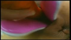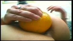 Ela enfia garrafas e legumes na buceta dela