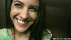 A safada Carolina Abril fica excitada na rua antes de fazer sexo oral em um estranho no elevador e ser fodida como deve ser