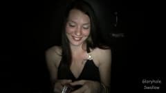 Os estranhos simplesmente enfiam seus pênis em um buraco e chupam uma morena que não pode vê-los