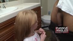 Uma tarde de muito prazer aguarda esta loira com um negro que tem um pau grosso e grande com o qual vai destruir sua vagina no banheiro.