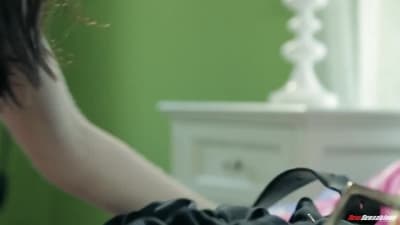 Morena excitada na cama sentindo muito tesão depois de se tocar e ficou tão feliz ao ver seu namorado que começou a lamber sua buceta.