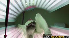 Nesse solário, uma vagabunda aproveita sua sessão de UV para se masturbar profundamente, combinando negócios com prazer.