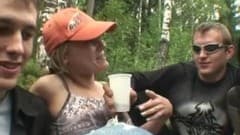 Aqui está um grupo de amigos que estão ficando malucos depois de alguma bebida na floresta. Porno grátis em boafoda.com