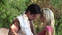 Ela faz sexo oral nele enquanto ele está no jardim