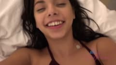 Essa linda morena é penetrada por um cara que a filma em pov enquanto a fode.