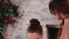 A linda morena recebe uma massagem a quatro mãos de duas vadias que vão dedilhá-la sem parar