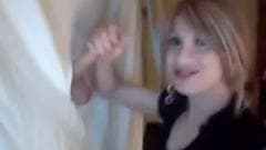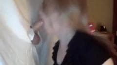 Ela não imaginava que por trás da cortina estivesse um homem com um pau tão gostoso. É por isso que ela abre um buraco para mamar sem ver o rosto.