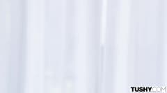 Emily dança na janela para atrair o cara do outro lado da rua e convidá-lo a entrar em seu quarto para transar. Ela abre a bunda para o pau dele