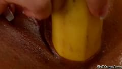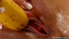 Esta pornstar linda e excitante irá mostrar-lhe o que pode fazer com um vibrador enorme e alguma fruta madura!