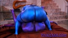 Essas vagabundas parecem incríveis, como alienígenas ou outras criaturas. A azul domina a roxa e a fode com um dildo amarrado aos quadris, não perca!