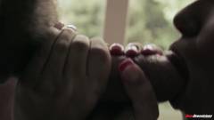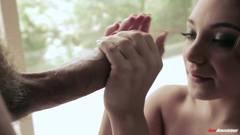 A gostosa da Khloe adora começar com uma cena solo para mostrar seu belo corpo de calcinha e salto alto, acompanhada de seu homem para ser fodida com força