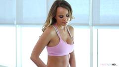 Essa loira com um belo corpo se entregará a esse homem depois de relaxar em suas sessões de exercícios. Seu corpo macio e bonito vai nos impressionar.
