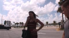 Que morena ousada. Ela conhece esse cara e vá passear. Eles não suportam o desejo e são divinamente apanhados no carro em movimento.
