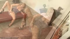 Uma loira bonita vai conhecer um museu do sexo e ver essas pinturas eróticas a deixará muito quente e começa a se masturbar sensualmente.