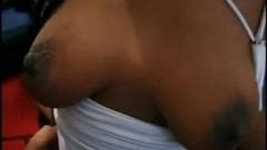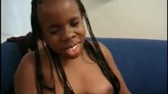 Veja como esta mulher negra de pequena estatura não se deixa intimidar por esses caras e gosta de todos eles gozando seus paus dentro de sua vagina.