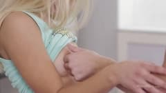 Essa loira está pronta para ter a sua bucetinha cheia de pila dura, por isso está toda de pernas abertas e à espera dele