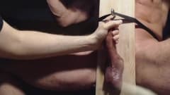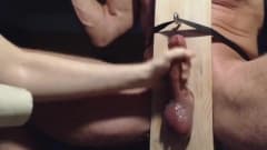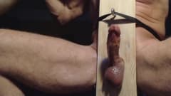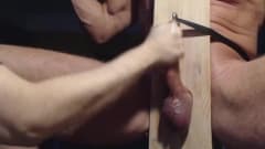 Ele enfia seu pau sobre uma placa de madeira