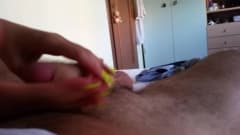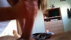 Esse cara é muito sortudo porque sua sobrinha sempre o ajuda a se masturbar quando chega ea m casa e descobre que ele está se masturbando.