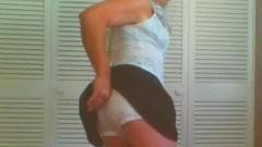 Vista-se de mulher e torne seu pau duro na frente da câmera.