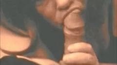 Este velho vestiu uma peruca preta para chupar o pau de seu parceiro, que aparentemente só fica excitado se sentir o cabelo roçando suas bolas.