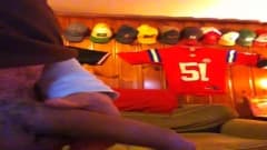 O cara fica de pé com a piça na mão e se masturba e com a outra mão segura a câmera perto e filma a piça ficando maior, mais dura e mais baixa!