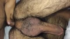 Essa cara peludo relaxa enquanto seu namorado acaricia seu ânus com os dedos. Enquanto é fodido o namorado toca seu pau, e os dois terminam gozando!