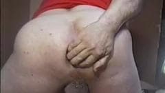 Cara se masturbando com um pepino na bunda